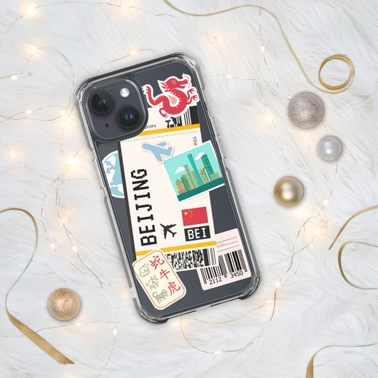 Beijing China Chinese Flag iPhone Case 15 14 13 12 11 Pro Max Plus Mini Gift Ideas Country Map Skyline Gift Travel Souvenir