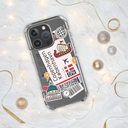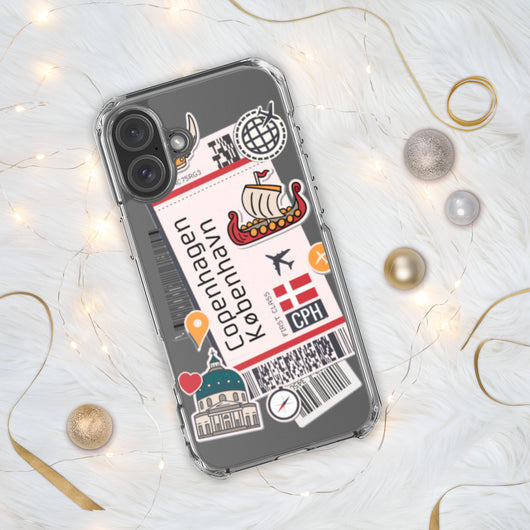 Copenhagen Denmark Danish Flag iPhone Case 16 15 14 13 12 11 Pro Max Plus Mini Gift Travel Souvenir Personalized Custom City Name