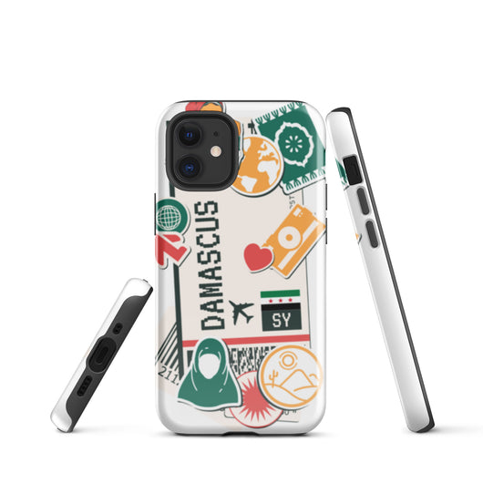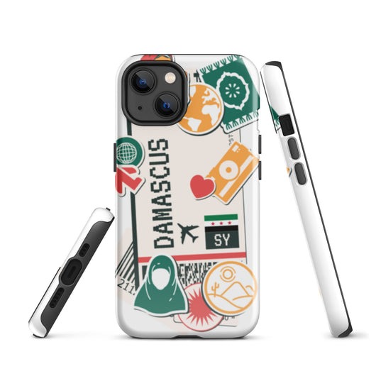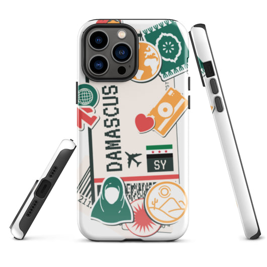 Damascus Syria Syrian Flag iPhone Case 15 14 13 12 11 Pro Max Plus Mini Gift Travel Souvenir Personalized Custom City Name