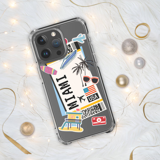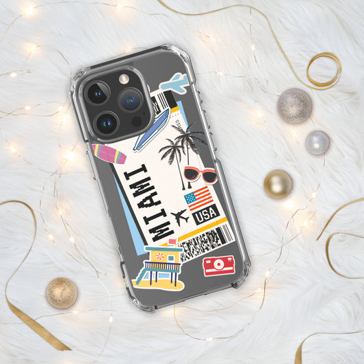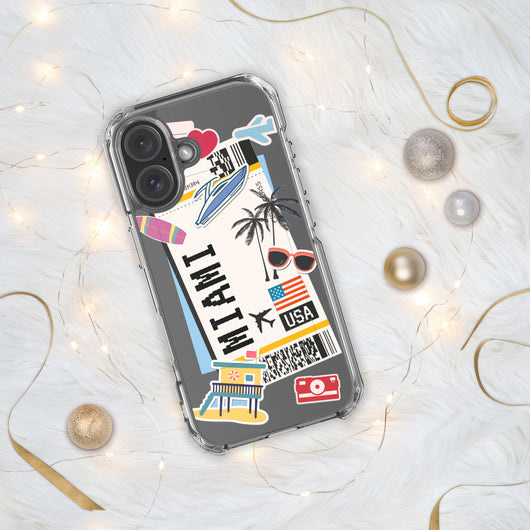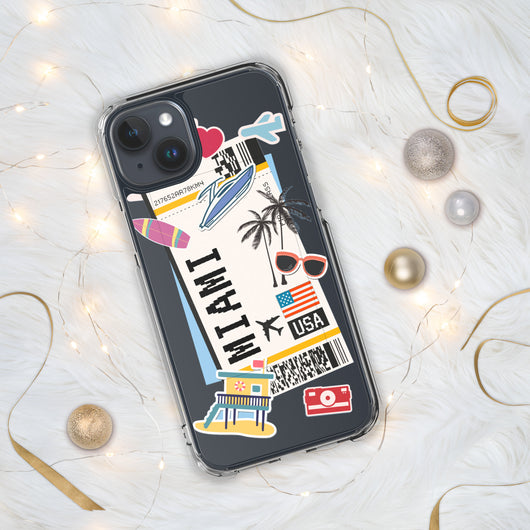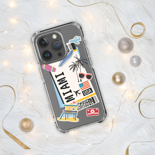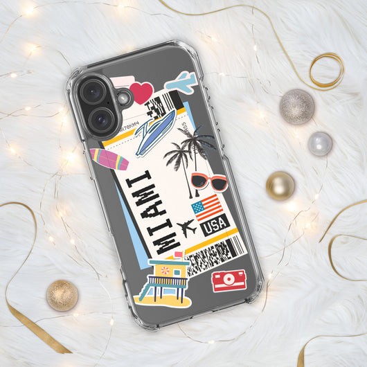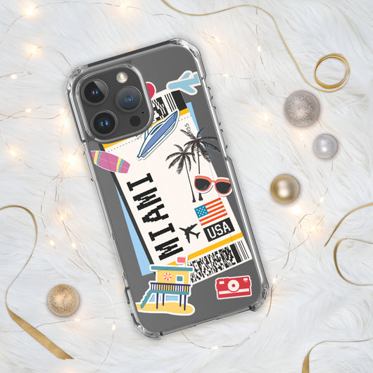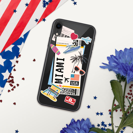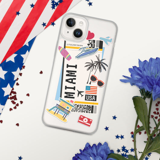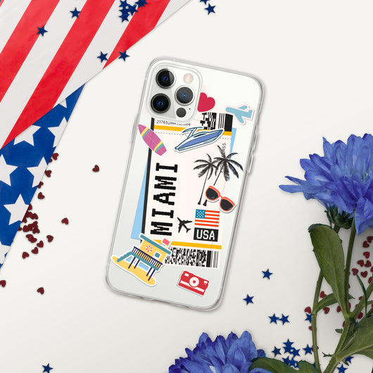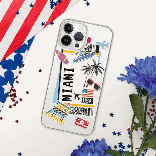 Miami Florida US Flag iPhone Case 16 15 14 13 12 11 Pro Max Plus Mini Gift Travel Souvenir Personalized Custom City Name