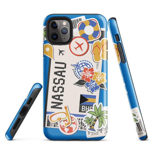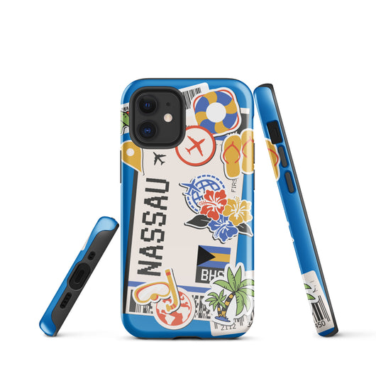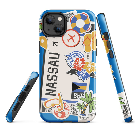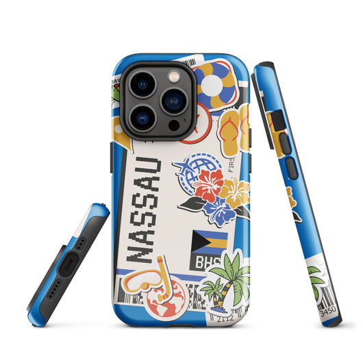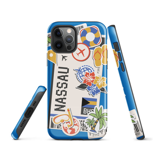 Nassau Bahamas iPhone Case Bahamian flag Phone Case Tough Fitted Hard Protective Shell Glossy Rubber Travel Souvenir City Art Gift Idea