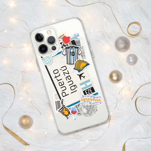 Puerto Iguazú Misiones Argentina Argentinian Flag iPhone Case 15 14 13 12 11 Pro Max Plus Mini Travel Souvenir Personalized Custom City Name