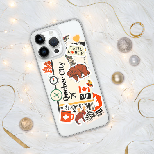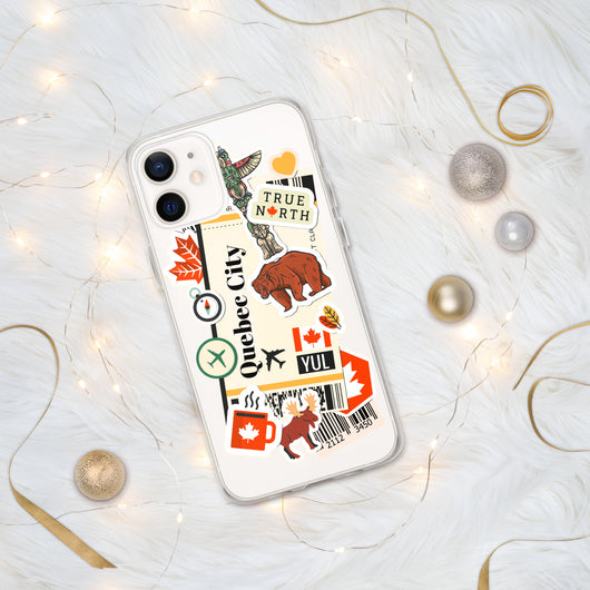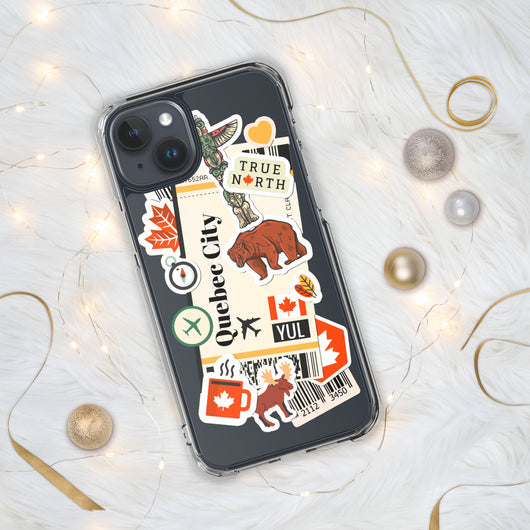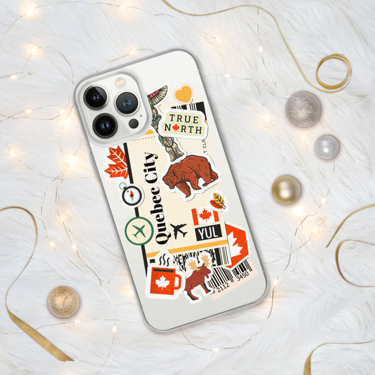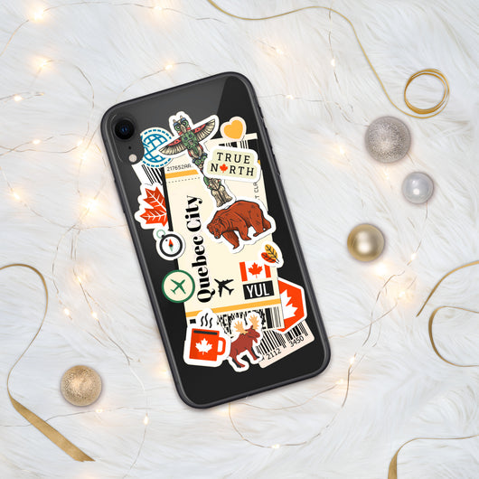 Québec City Quebec Canada Canadian Flag iPhone Case 15 14 13 12 11 Pro Max Plus Mini Travel Souvenir Personalized Custom City Name