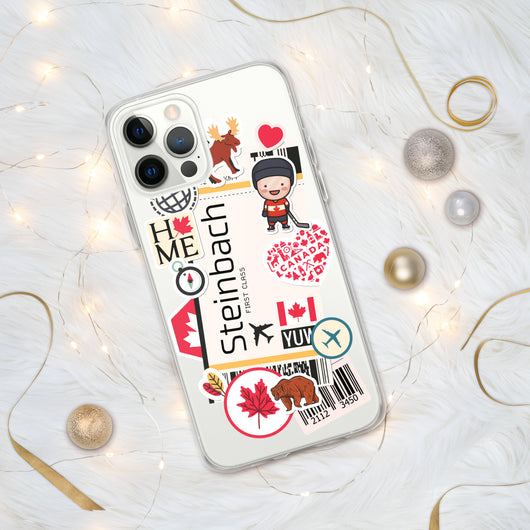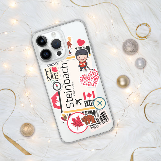 Steinbach Manitoba Canada Canadian Flag iPhone Case 15 14 13 12 11 Pro Max Plus Mini Travel Souvenir Personalized Custom City Name