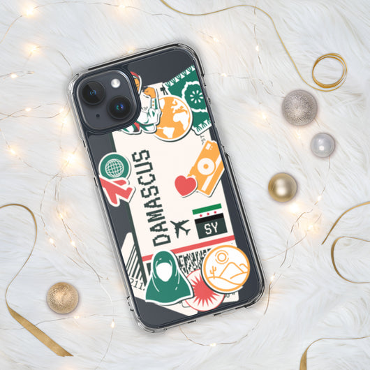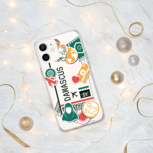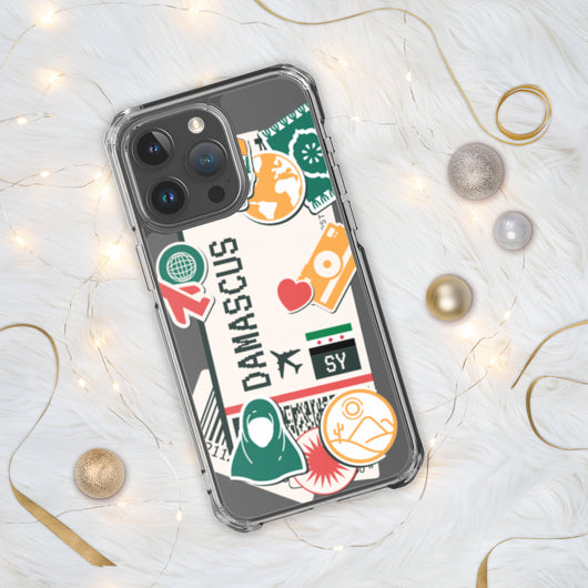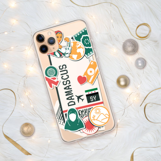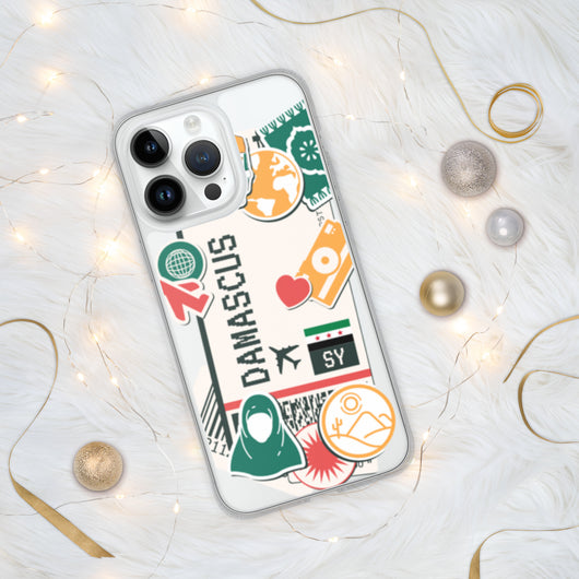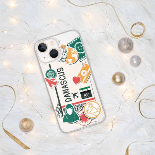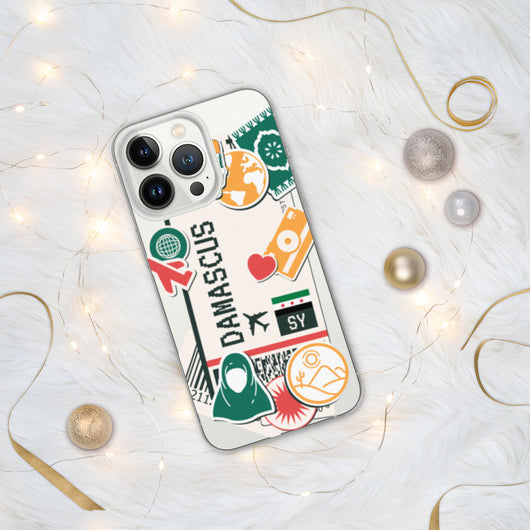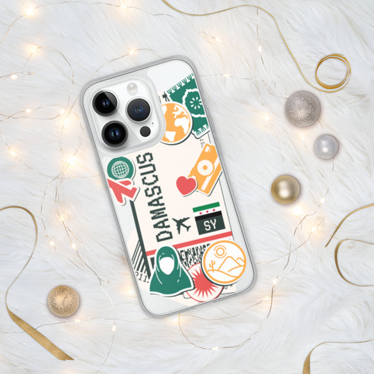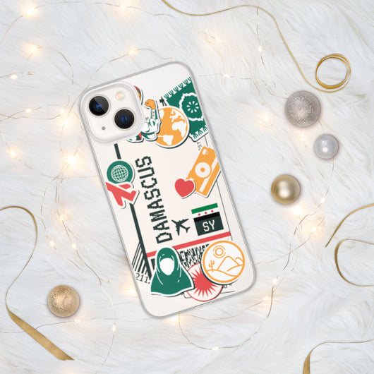 Damaskus Syrien Syrische Flagge iPhone Hülle 15 14 13 12 11 Pro Max Plus Mini Geschenk Reise Souvenir Personalisierter Stadtname