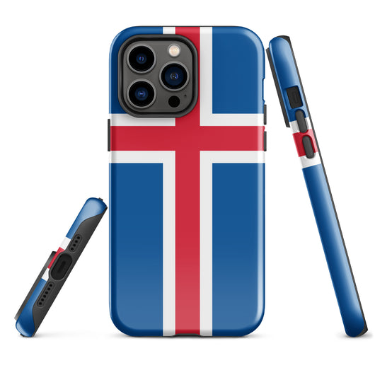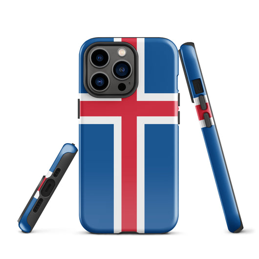 Island Island Isländische Flagge iPhone Hülle 15 14 13 12 11 Pro Max Plus Mini Robuste Hartschale Glänzende Gummi Handyhülle Geschenk