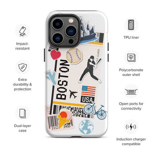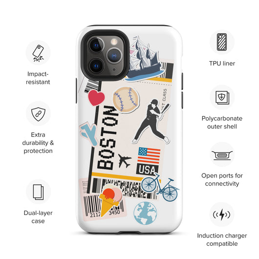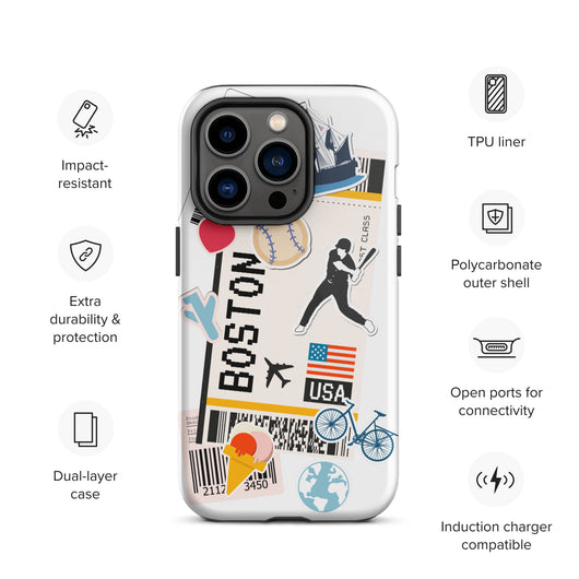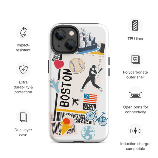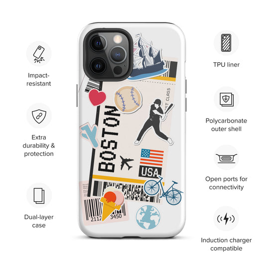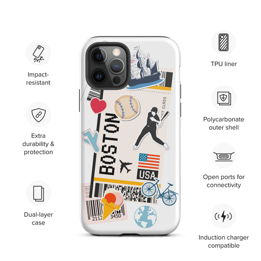 Boston Massachusetts American Baseball iPhone 14 13 12 11 Pro Max Plus Mini Phone Case iPhone Tough Rugged Protective iPhone case