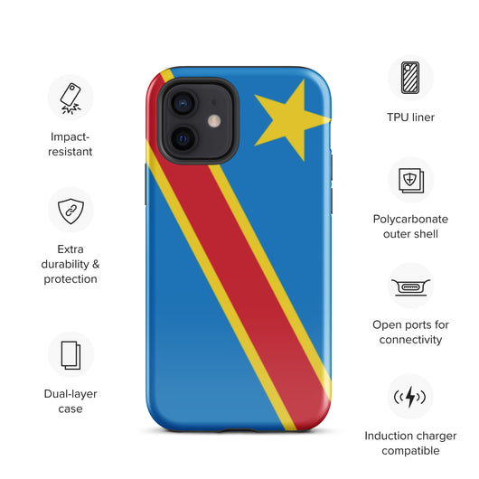 Funda para iPhone 15, 14, 13, 12, 11 Pro Max Plus Mini con la bandera de Kinshasa de la República Democrática del Congo, regalo de recuerdo de viaje