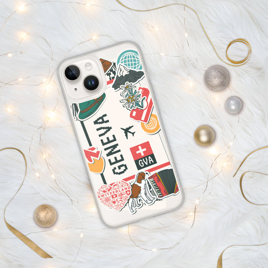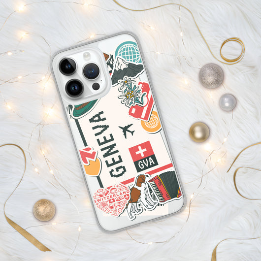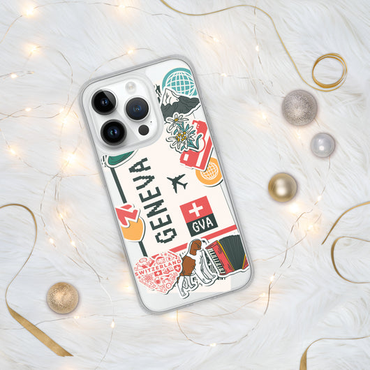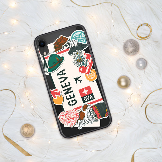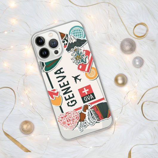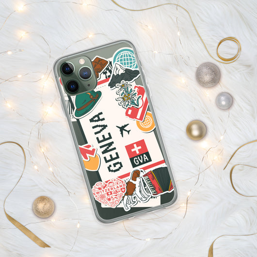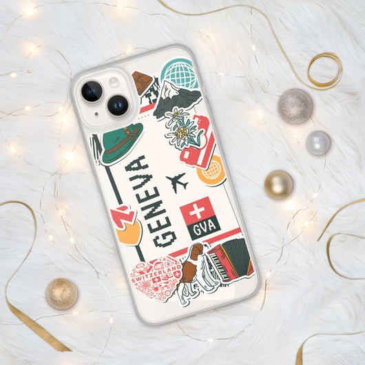 Geneva Switzerland Swiss Flag iPhone Case 16 15 14 13 12 11 Pro Max Plus Mini Gift Travel Souvenir Personalized Custom City Name