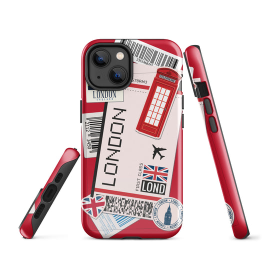 London iPhone Case England British Flag Phone Case Tough Fitted Hard Protective Shell Glossy Rubber Travel Souvenir City Art Gift Idea