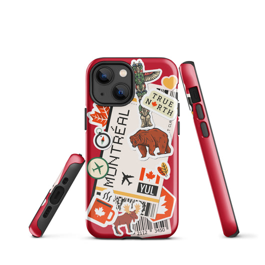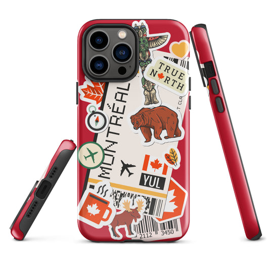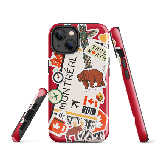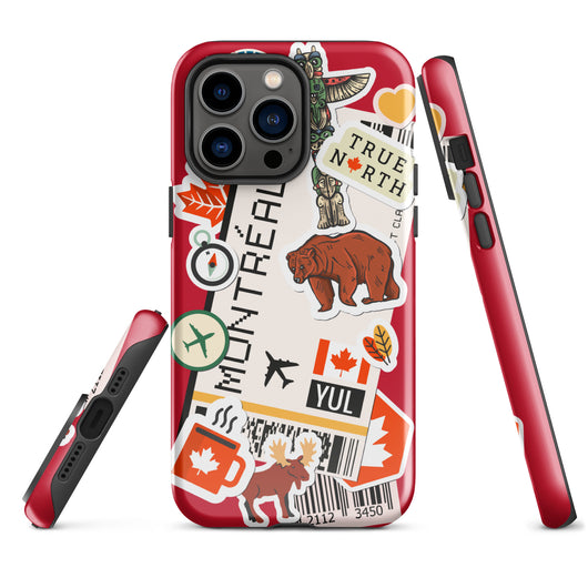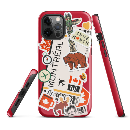 Montreal Québec iPhone Case Canada Canadian Flag Phone Case Tough Fitted Hard Protective Shell Glossy Rubber Travel Souvenir Gift Idea