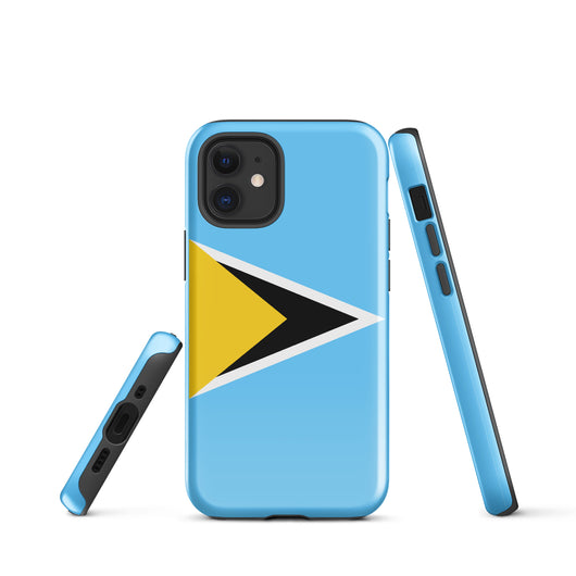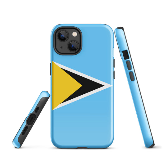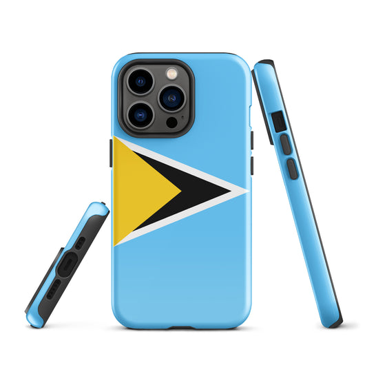 Funda para iPhone 15, 14, 13, 12 y 11 Pro Max Plus Mini con la bandera de Santa Lucía Ideas para regalos Mapa del país Horizonte Regalo para ella Ideas para él Recuerdo de viaje